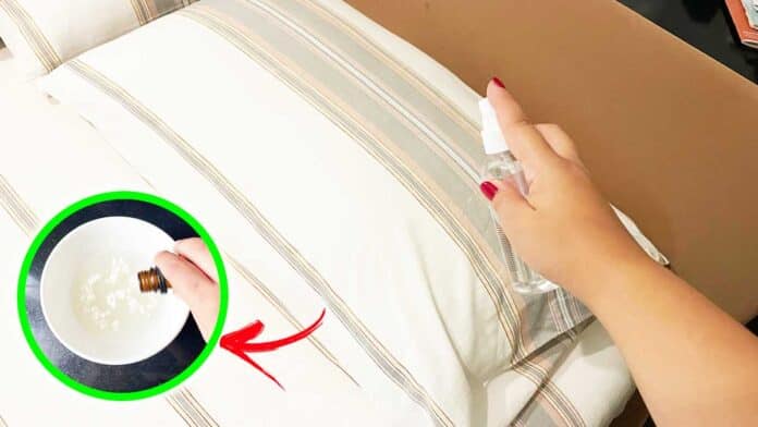Iniziate, quindi, con il versare l’alcol e gli oli essenziali in un flacone spray e agitate il tutto per far bene amalgamare tra loro gli ingredienti. Dopodiché, aggiungete anche l’acqua distillata e agitate nuovamente il flacone per mescolare ulteriormente il tutto.