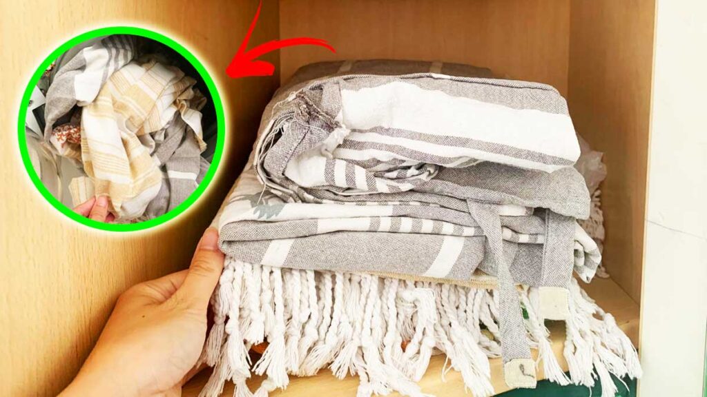 Una volta visto come lavare i teli mare per conservarli, vediamo come piegarli nell’armadio in modo da averli ordinati. Vi suggeriamo di utilizzare un ripiano libero che dedicherete esclusivamente ai teli mare in modo da trovarli facilmente il prossimo anno.