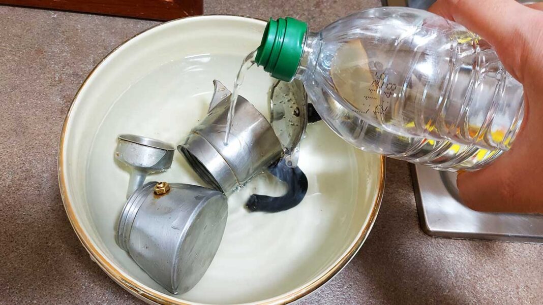 Tutto quello che dovrete fare è riempire una ciotola con acqua calda e versare 1 cucchiaio e mezzo di bicarbonato dentro. Quando si sarà sciolto, ponete la moka all’interno e tenetela in ammollo per almeno 3 ore.