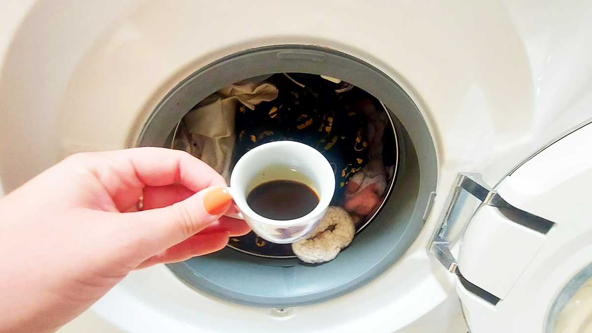 Bene, quello che bisogna fare è mettere nella pallina della lavatrice 2 caffè scuri raffreddati. Mettetela nel cestello e avviate poi un lavaggio con una temperatura non superiore ai 30 gradi.