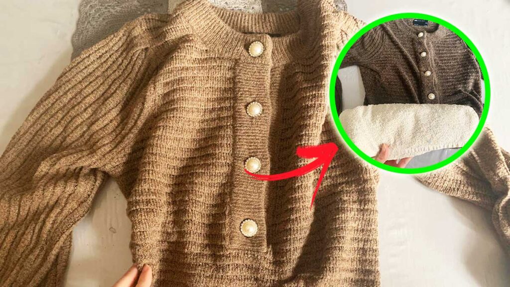 Come se non bastasse, questo trucchetto degli asciugamani, vi permetterà di asciugare più velocemente i vostri maglioni, dal momento che assorbiranno tutta l’acqua in eccesso!