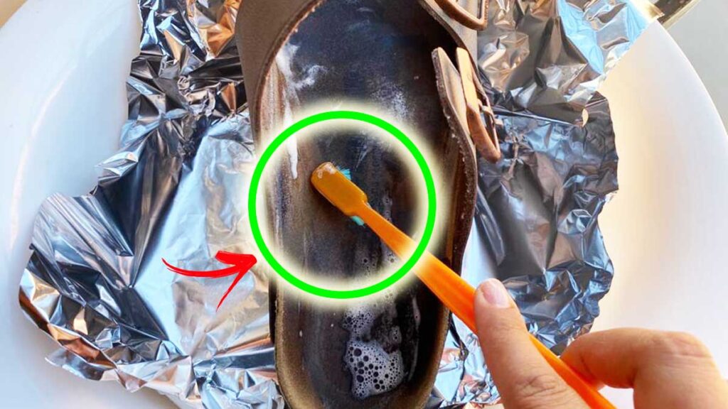 Create una sorta di pasta densa con mezzo limone e circa 2 cucchiai di bicarbonato di sodio, mescolate e poi applicate il composto sulle suole dei sandali.
