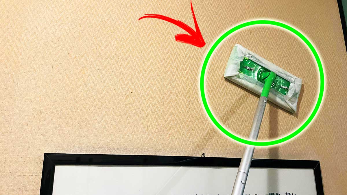 Per arrivare alle parti più alte della carta da parati, infine, potete attaccare il panno a una scopa.