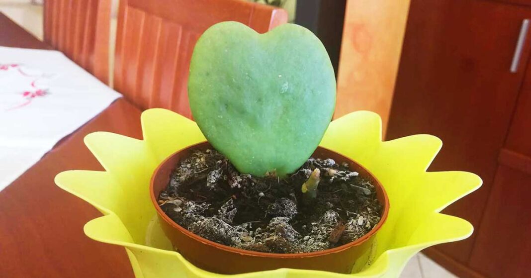 La Hoya Kerrii si presenta come una piccola piantina. In realtà, a forma di cuore non è l’intera pianta, ma solo le sue foglie.