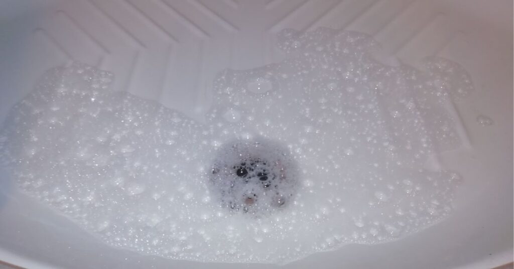 Dopo la reazione di bicarbonato e aceto, molte persone si limitano a far scorrere un po’ di acqua tiepida dallo stesso soffione della doccia. È un errore piuttosto comune, ma poco efficace.